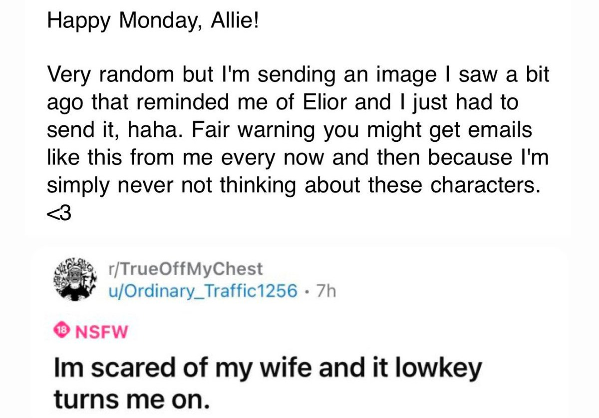 If you’re new here, I’m Allie, and I write fantasy books with Ghibli-esque worlds, stabby FMCs, and MMCs who are obsessed with their messy women!