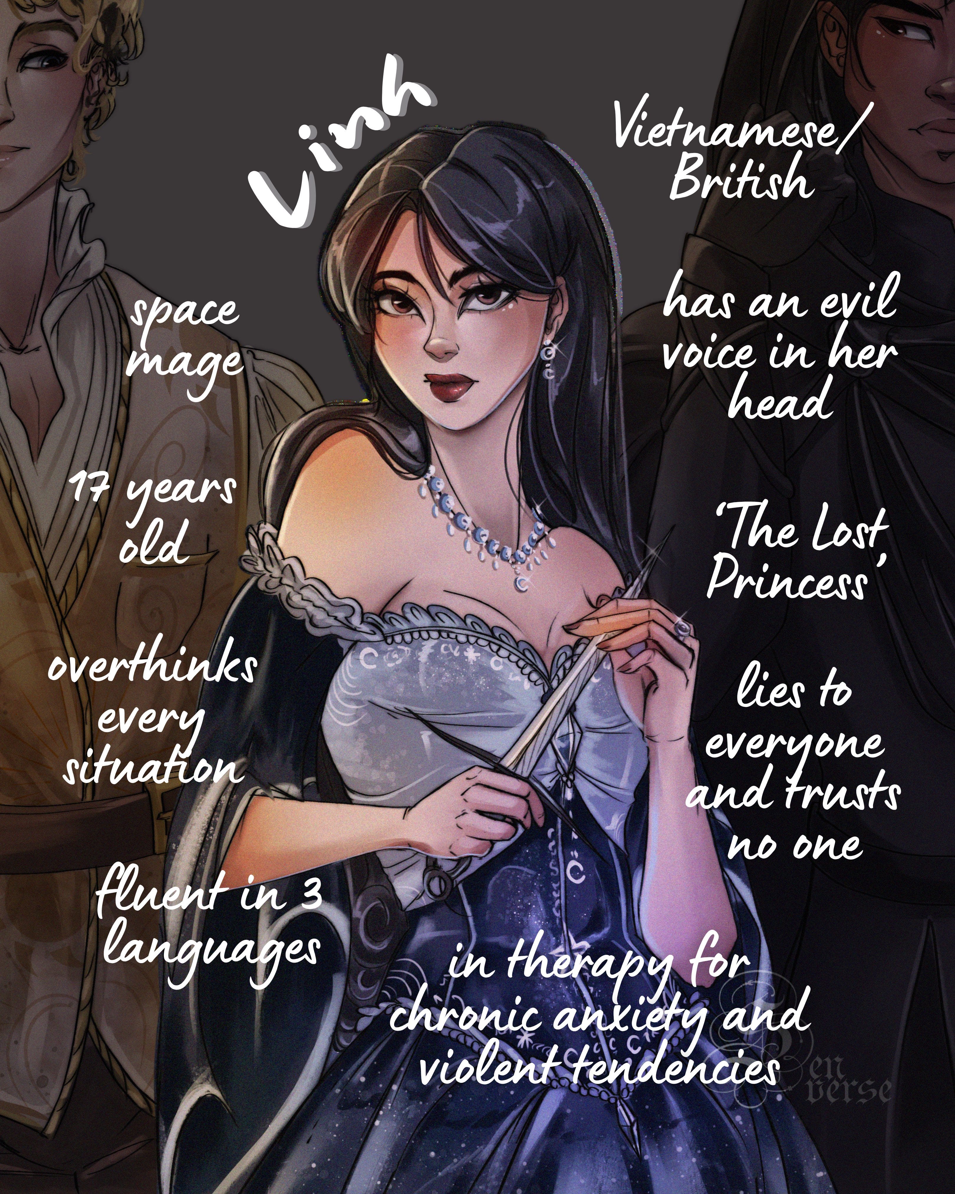 Another big change I made in this new draft was upping the tension and the pining between Elinh (ship name for Elior and Linh; credit to my friend Mar for coming up with it). If you follow me on social media, you might’ve already seen the message my editor sent about Elior, and I truly cannot wait for you all to fall in love with him like we have. Also I appreciate everyone who’s been spamming my inbox with text posts and memes about Elior 🤭